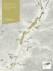イザルコ谷のカンティーナ。北はブレッサノーネ (Bressanone / Brixen) から南はキュウザ (Chiusa / Klausen) までの谷で、主に白ワインが作られている。 北のブレッサノーネには、ノヴァチェッラ修道院のカンティーナがある。谷だけに高低差があり、南北に長い土地、また土壌も異なる地域で生育されたワインは、まだまだマイナーなカンティーナでありながら、素晴らしくおいしい。 |